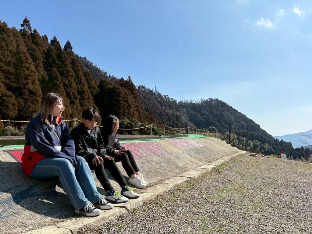 エリアトラウト初挑戦の小林ファミリーに、釣り具のまるきんのスタッフさんたちがキャスティングから丁寧にレクチャーします。小林ファミリーも初めての釣りを楽しむことができたようです。