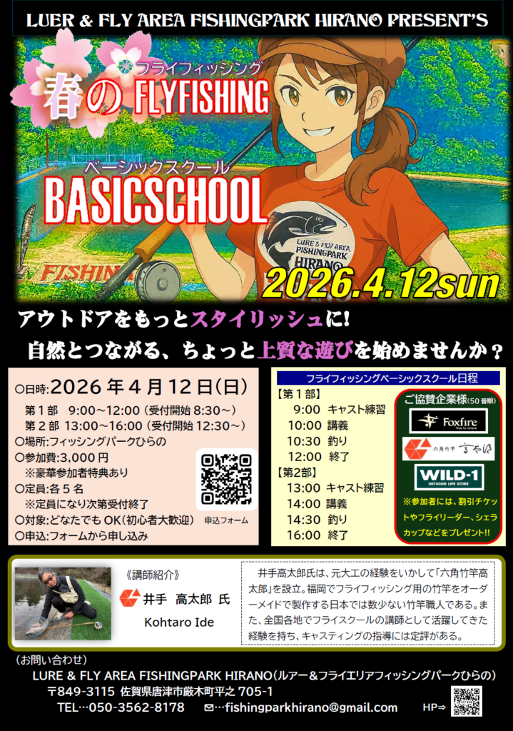 さぁ、春が近づき、行楽シーズン直前に開催されるスクールです。ぜひ、この機会にフライフィッシングを始めて、お洒落でカッコよく、自然とつながれる上質な遊びを始めてみませんか?皆様のご参加をお待ちしております。
