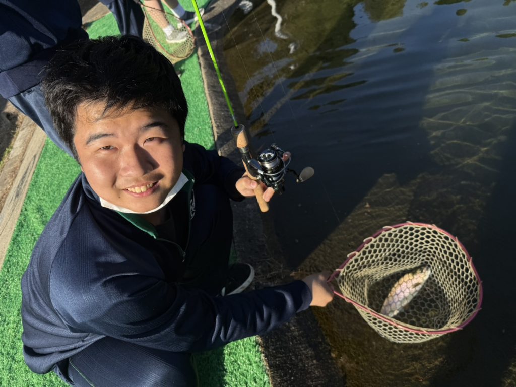 結果は、ほとんどの生徒さんが無事に魚をキャッチすることができました。2人一組になって釣る人キャッチする人で協力して釣りをしました。途中でバレると、2人で「あー」という悲鳴が釣り場に響いていました(笑)皆さん、初めての釣りは、とても楽しかったみたいです。
