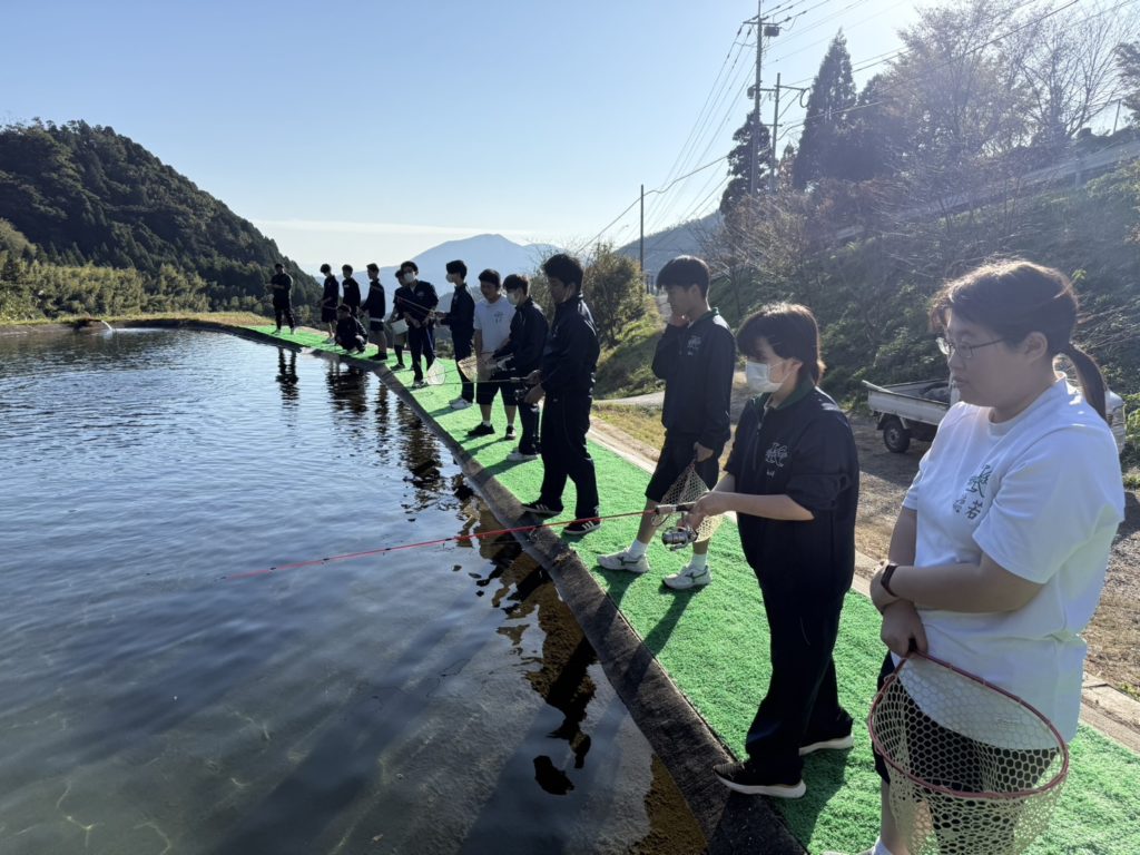 昨日は、厳木高校生ボランティアの皆さんの活動が最後でした。養殖プールもとても綺麗になりました。ありがとうございました。せっかくなのでボランティア活動の後に釣りを体験してもらいました。