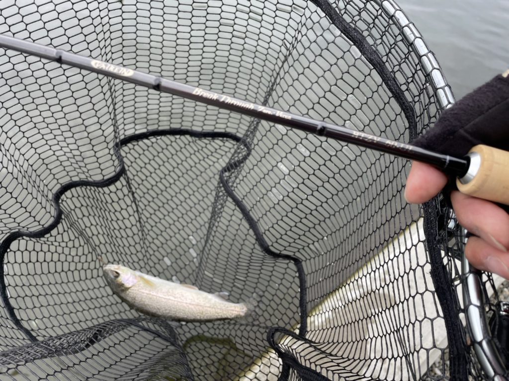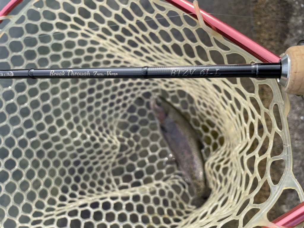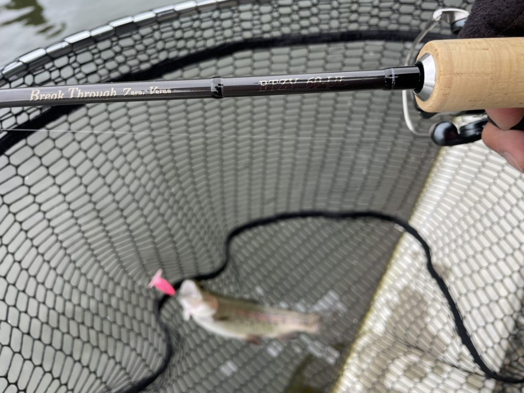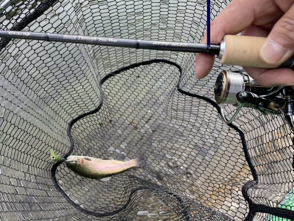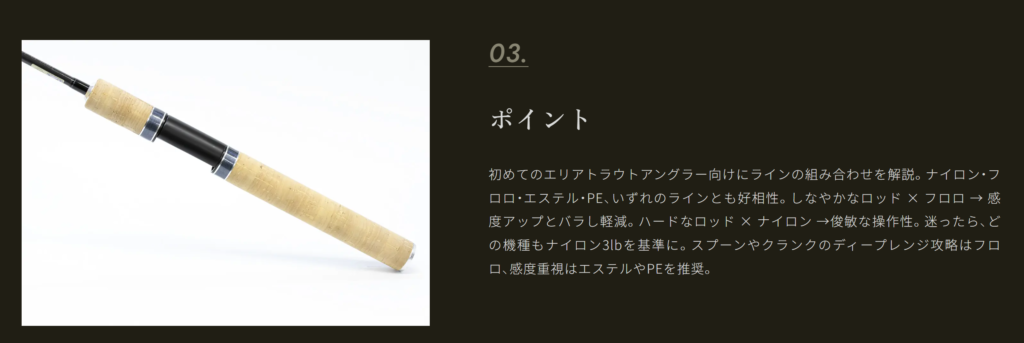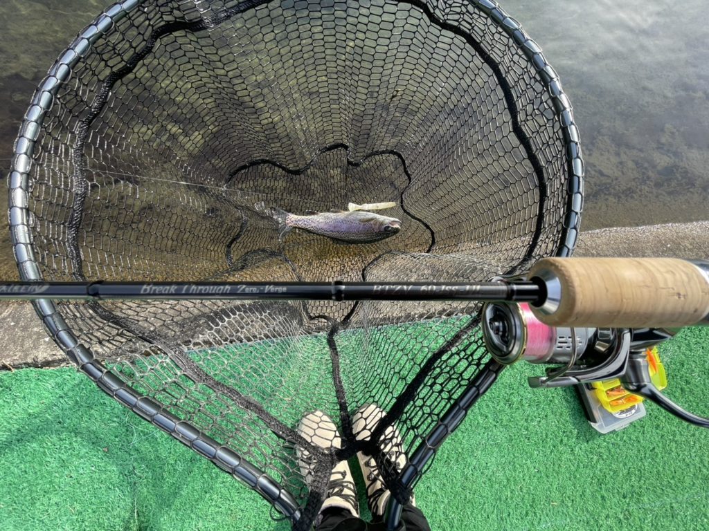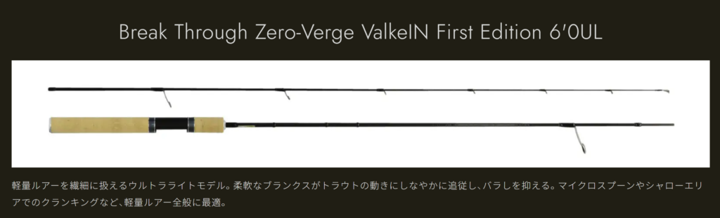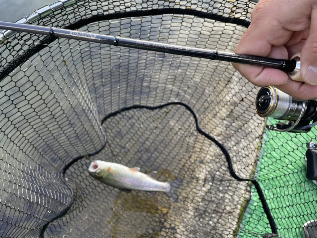 前田アドバイザー…「自分は、スプーンが好きなので、特に60ULがおススメです。1~1.5グラムのスプーンからマイクロまでとても使いやすかったです。ひらのでスプーンを使うなら60ULはちょうどいいと思います。また、ちょっとレベルアップしてボトムやミノー等の操作系を使いたいなら、60GLが長さも硬さもひらののフィールドに合っています。巻き物系とは違ったアプローチで釣れる魚の数も増えるので、ステップアップにも良いですね。エステルを合わせたらめちゃめちゃ感度がアップし、あわせなくても勝手に針掛かりしてくれる感じです。ミノーやボトムルアーに挑戦したいなら、このロッドがすごく楽しいですよ。自分の好きな釣り方に合わせてロッドを選んでいただくと、エリアトラウトがさらに楽しなると思います。ぜひ、手に取って、ひらので実釣していただきたいと思います。ファーストエディションは、文句なしにおススメです。」