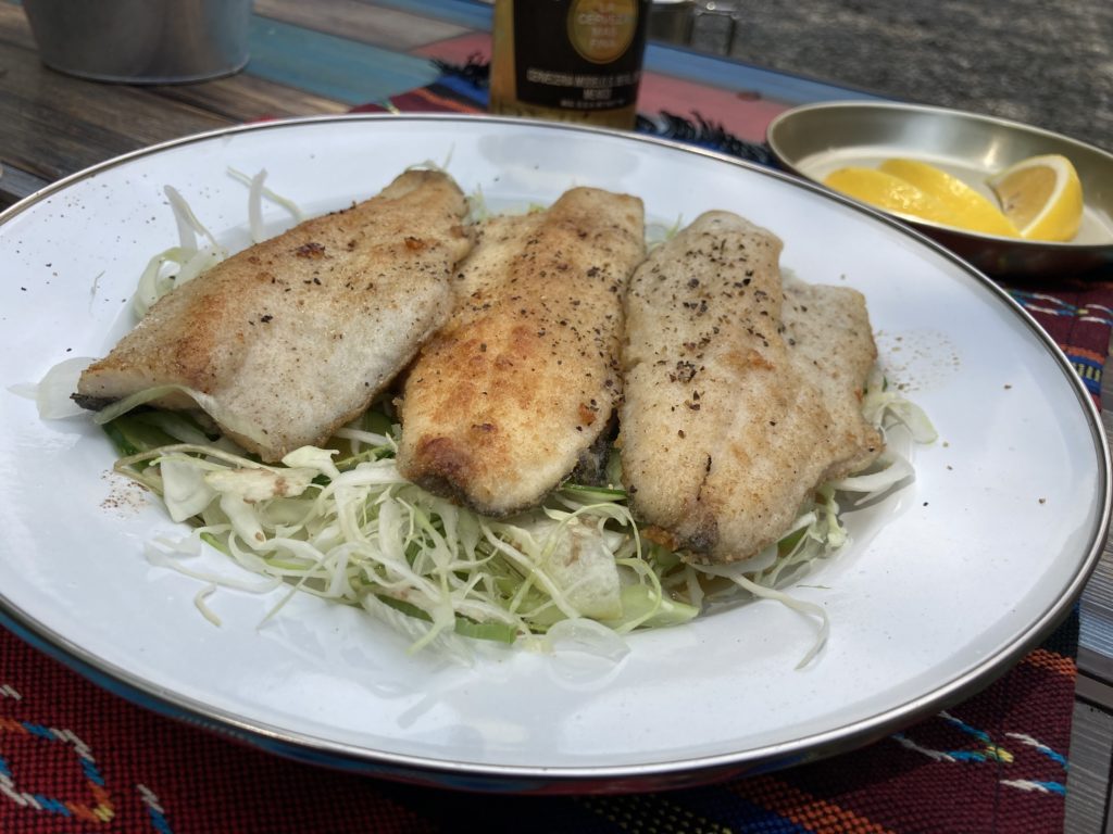 ニジマスは、シンプルに塩焼きが簡単で手間もかかりません。しかし、ひらののおススメとしては、ニジマスは白身で淡白な魚なのでどちらかといえば洋風の料理に合うのです。例えば、バターでソテーしてムニエルにしたり、フライにしてたっぷりのタルタルソースでいただいたりすると最高においしいのです。また、生食も大丈夫なので、野菜と合わせてカルパッチョにしたり、ニジマス丼にしたりするのがおススメです。美味しそうでしょ。ちなみに、塩焼きだって「イタリアンハーブソルト」で味付けするだけでもグッと美味しくなりますよ。
