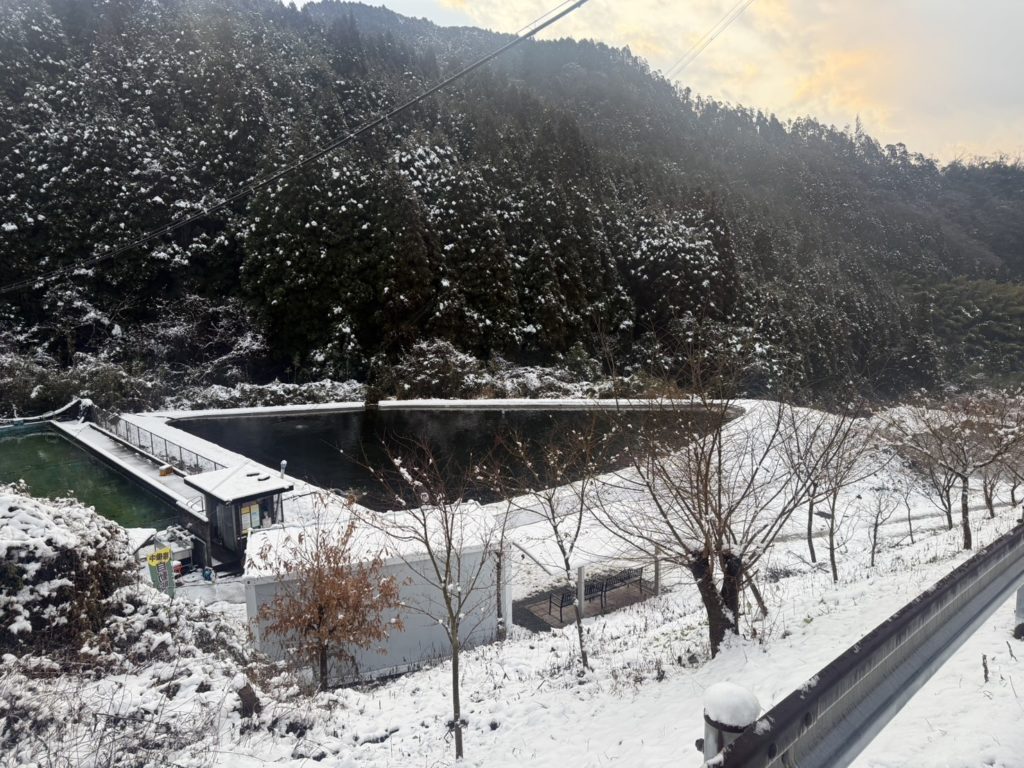 釣り場も真っ白です。今日は晴れていますが、気温が低いので完全な防寒対策と滑りにくい靴が必須です。除雪車が入って、道路の雪がなくなったら、またお知らせいたします。
